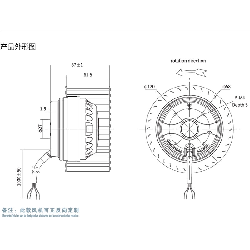 YWF.F2S-120-060AX0A全新凈化器單鼓風機專用前傾離心