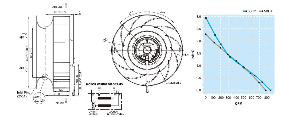 UF250APA11H1C2A離心風扇臺灣福佑伺服電機散熱風扇充電樁外轉子